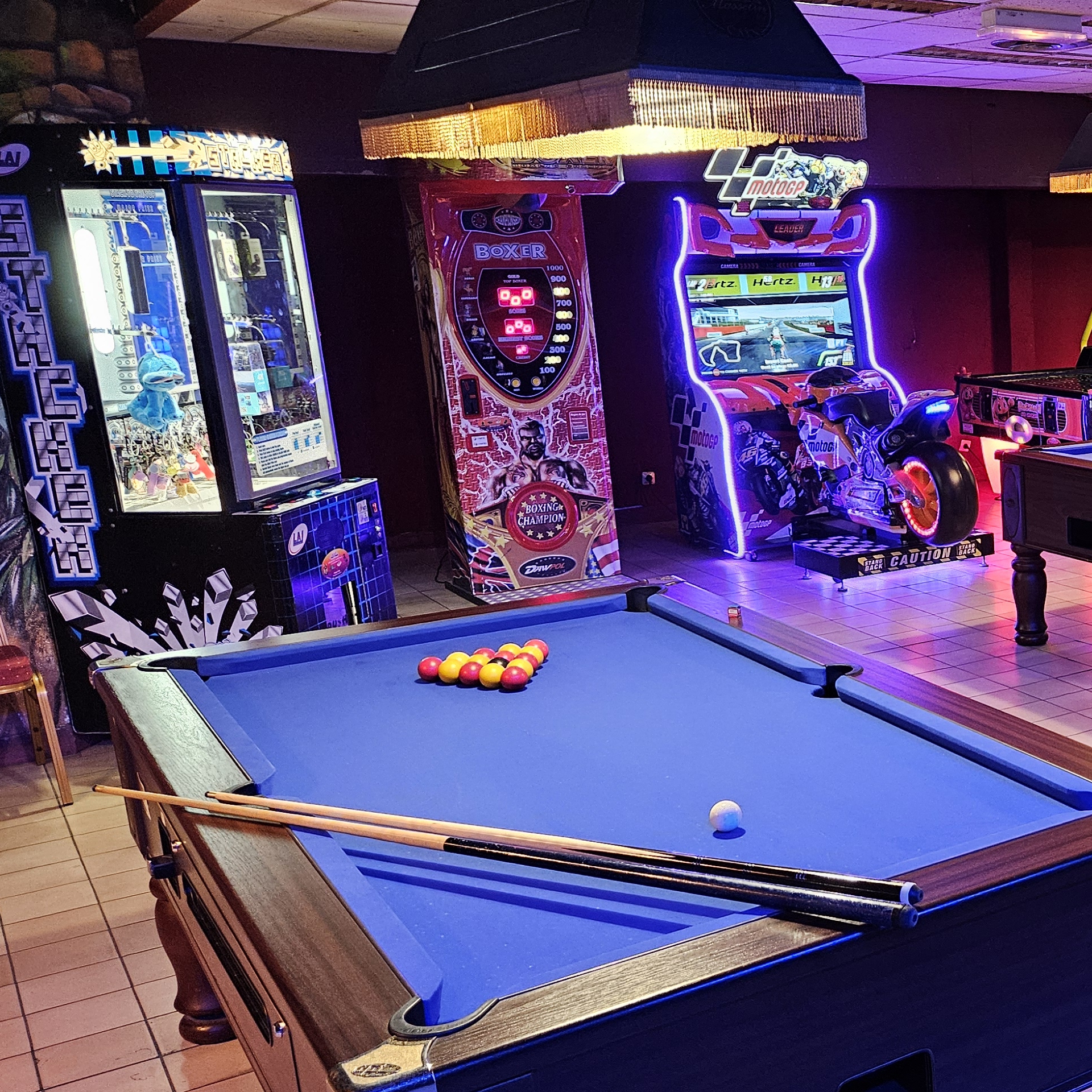 Billards et jeux d'arcades avec monnayeur de 2 €